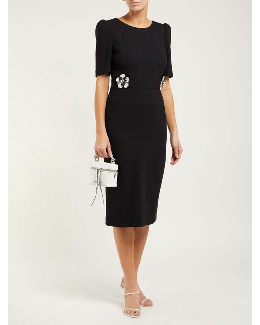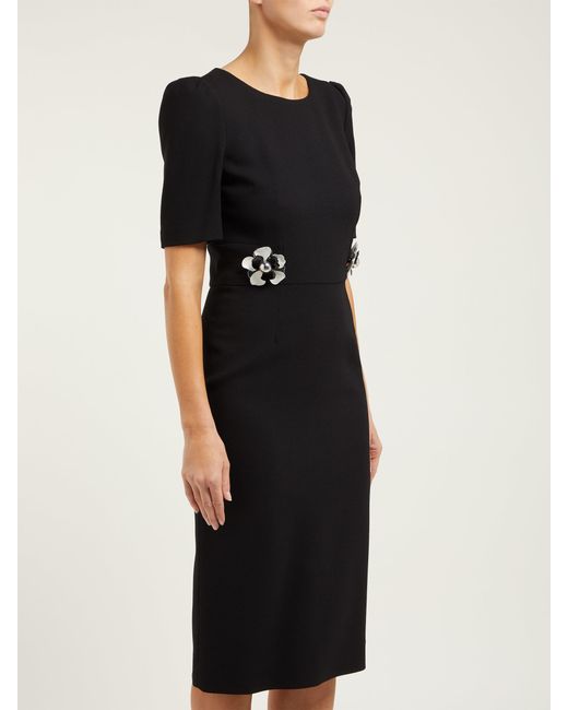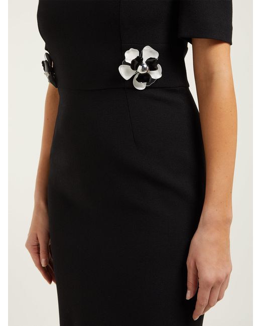 Goat Hush Floral Embellished Wool Crepe Midi Dress In Black