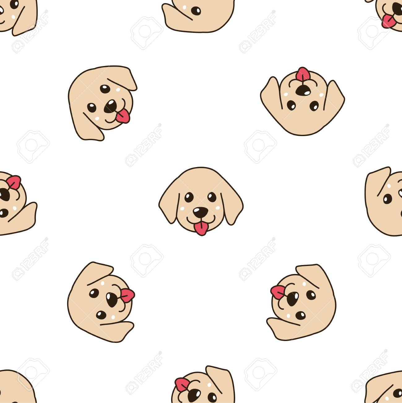 Vector Cartoon Character Cute Golden Retriever Puppy Dog Seamless